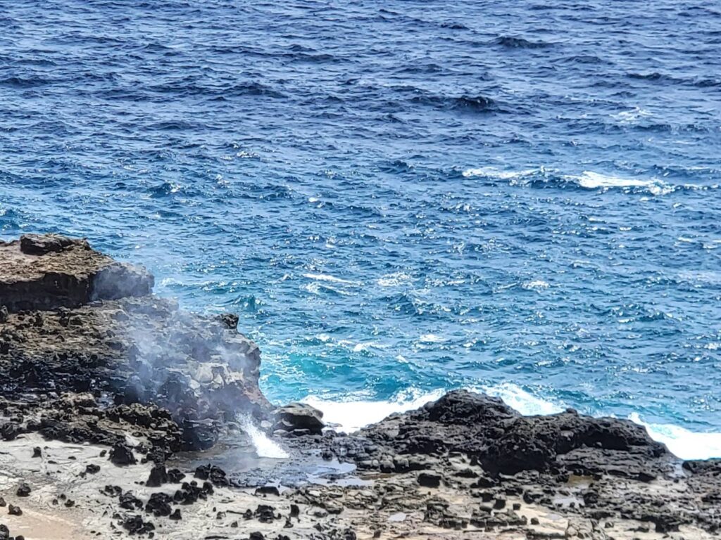 “The blowhole can eject water up to 100 feet into the air during high surf or high tide. Never stand between the blowhole and the ocean, and never turn your back on the sea—rogue waves can pull people in instantly. One death has been confirmed from this hazard.”