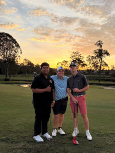 Matthew enjoyed many aspects of Australia. But not surfing. “I didn’t like surfing – I just couldn’t get both legs up on the board. It was frustrating.” he said. But at least there weren’t any sharks that he saw. That’s one Australian predator that didn’t spoil the time, probably because the golfers didn’t venture far into the water.