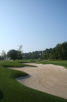 You won’t lose a lot of golf balls at The Peninsula, but that doesn’t mean there aren’t hazards to contend with. Here, a fairway bunker on the par four 4th hole.